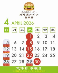 ※ハンバーガー売り切れ次第closeする場合もございます。